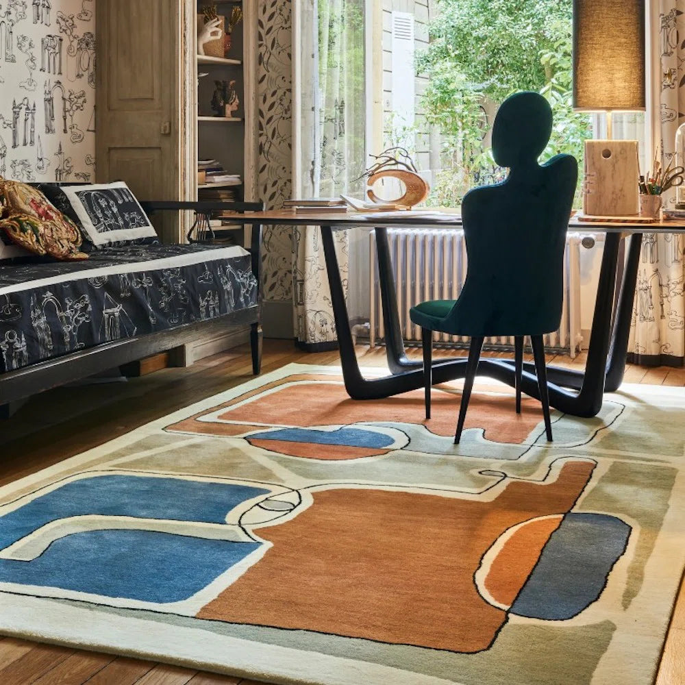 The Bleu Des Yeux Rug by Toulemonde Bochart brings vibrant energy and refined texture to any indoor space. Hand-tufted from wool and art silk, its design draws inspiration from Vincent Darré’s watercolors, with curving, enamel-like shapes highlighted by delicate dark borders. This rug is both a visual centerpiece and a tactile delight, combining artistry with luxurious comfort.