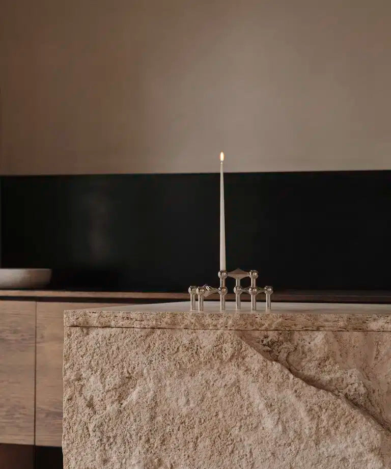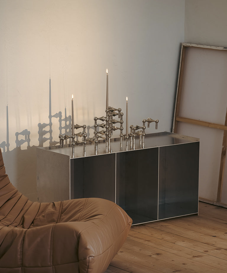 The STOFF Copenhagen Candleholder is an enduring icon of modular design, rooted in the original 1960s creation by Hans Nagel and Werner Stoff. Conceived as a system rather than a single object, each piece is designed to be stacked, combined, and reconfigured — allowing the candleholder to evolve into a sculptural form shaped entirely by its owner.