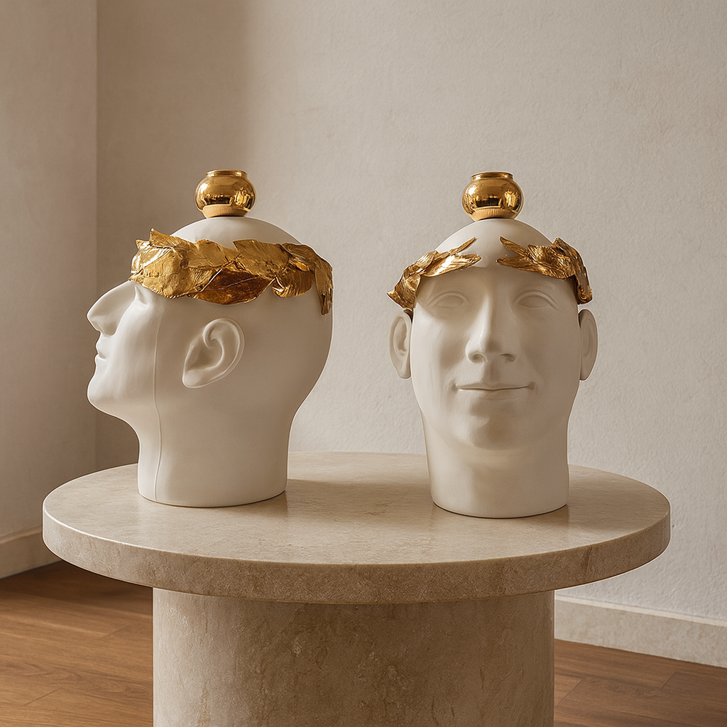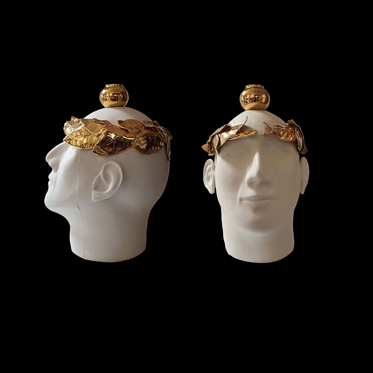 Ceasar by Elica Studio is a porcelain head sculpture that reinterprets classical grandeur with modern minimalism. Inspired by ancient Roman busts, this handcrafted Italian art piece features clean lines and a commanding presence, making it a timeless addition to any sophisticated space. Part of Elica’s collectible porcelain series