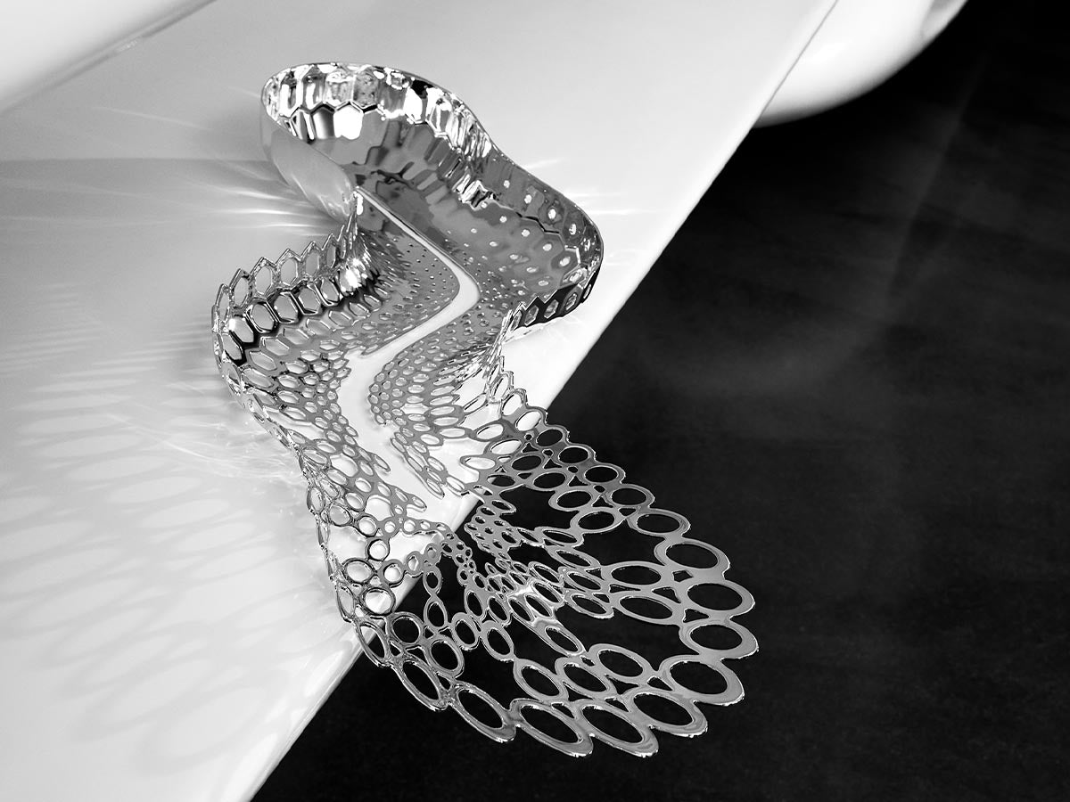 The Cell Centrepiece by Zaha Hadid Design is a masterful exploration of form and space, where fluid, cellular-inspired structures meet precision perforations. Crafted in 2019, this sculptural object balances solidity and void, with lateral undulations that encourage playful interaction and versatile placement. Its striking design transforms any table or surface into a centerpiece of contemporary artistry.