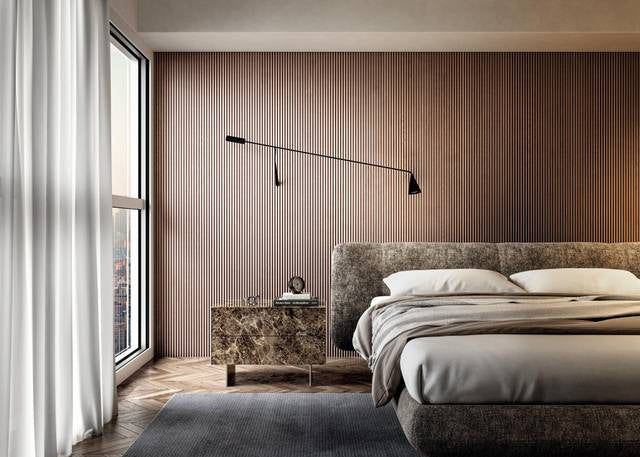 Generously padded and finished with precise tailored stitching, the wrap-around headboard balances softness with refined craftsmanship. Upholstery can be customized in LAGO’s extensive selection of fabric, leather, and faux leather options, allowing the bed to adapt seamlessly to any interior style.