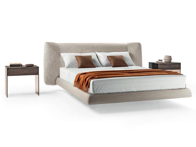 Bed-In transforms the bedroom into a sanctuary of comfort. Its large, ergonomically shaped headboard with hugging curves invites relaxation, offering a gentle sense of protection and intimacy. The bed’s dynamic form is enhanced by flared detailing at the base, giving it a contemporary sculptural presence.