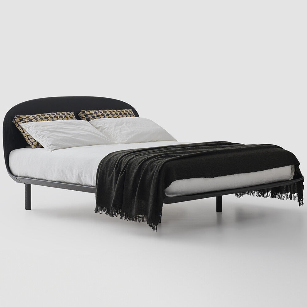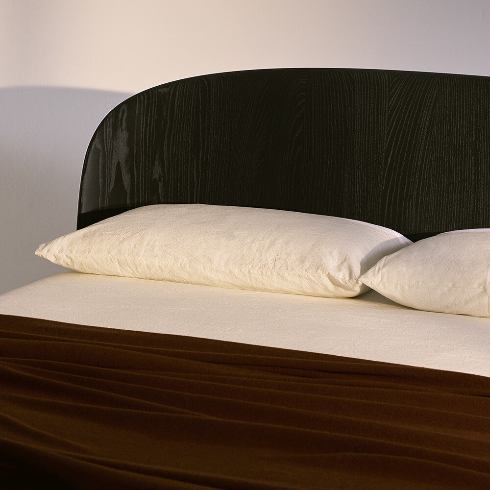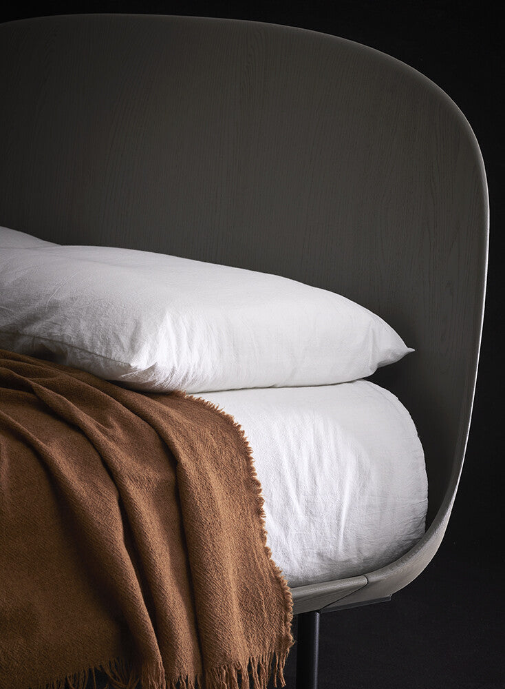 Enveloping curves define its intimate character, creating a protected dimension designed for deep, restorative rest. Nest blends refined craftsmanship with contemporary sophistication: the generously rounded headboard and bed frame, crafted in ash wood with a subtle concave profile, showcase meticulous detailing and elevated finishes.