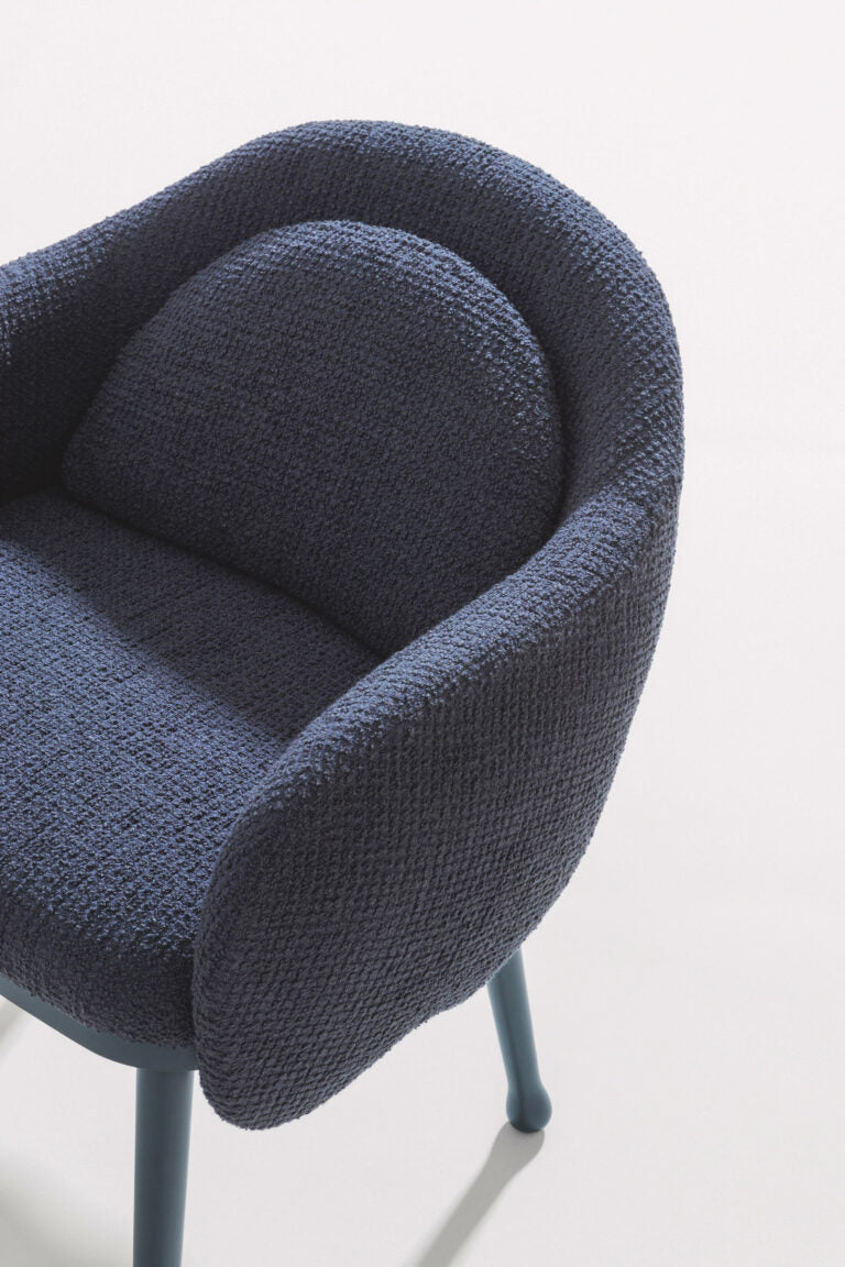 Inspired by the fluid lines of high fashion, the collection expresses refined sophistication through carefully selected upholstery. The interplay of contrasting colors and textures highlights both the frame and the cushioning, creating a bold yet elegant visual dialogue. Designed for comfort and style, this lounge piece is ideal for residential, hospitality, or refined contract interiors.