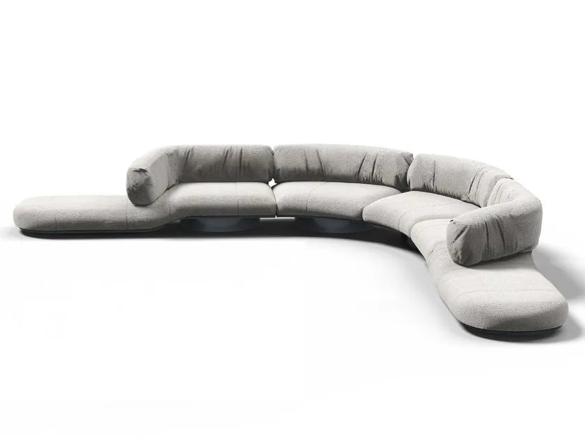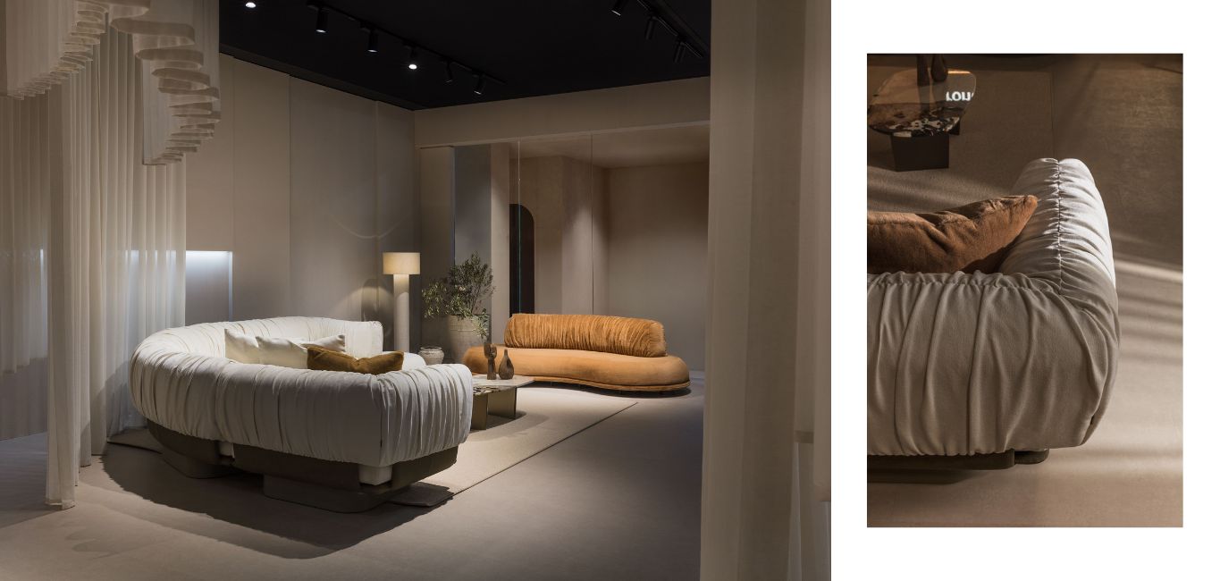 The Break Sofa makes a striking statement with its generous proportions and signature draped upholstery. Its sculptural form balances comfort and refinement, creating a visually captivating centerpiece for modern interiors. Upholstered in SKO fabric (Col. 01, Cat. D) with accents in Colorado leather (2566, Cat. 3000), Break embodies contemporary sophistication while offering a luxurious seating experience. Ideal for spaces that demand style, presence, and modern elegance.