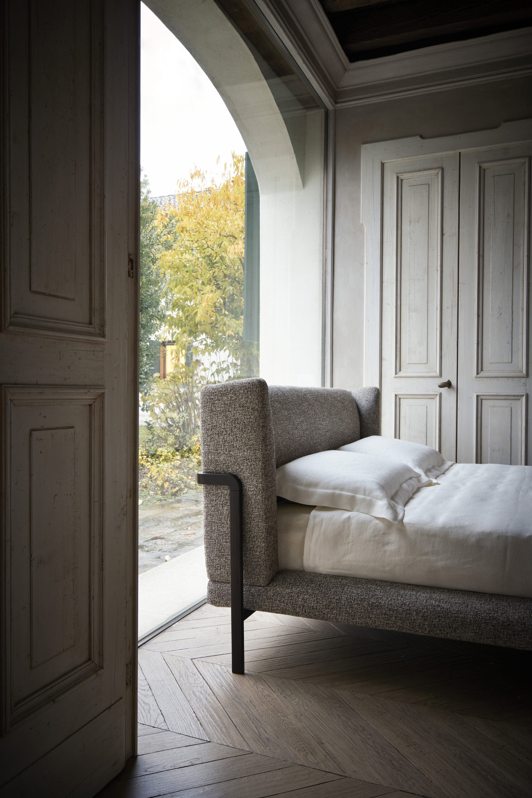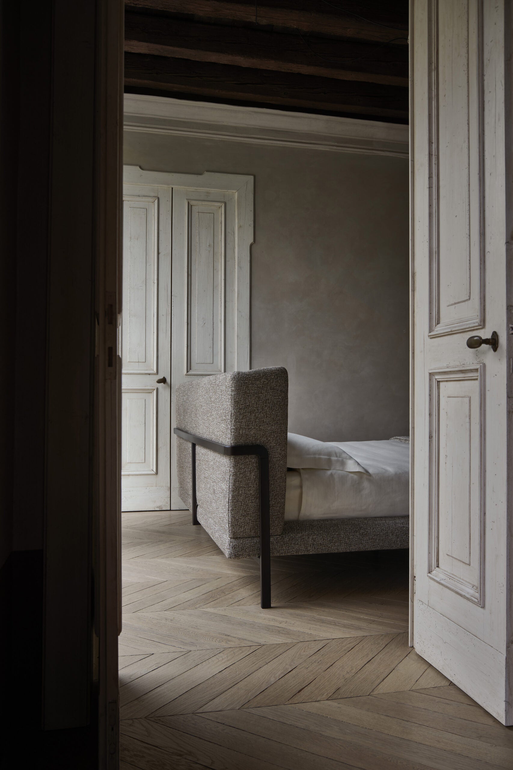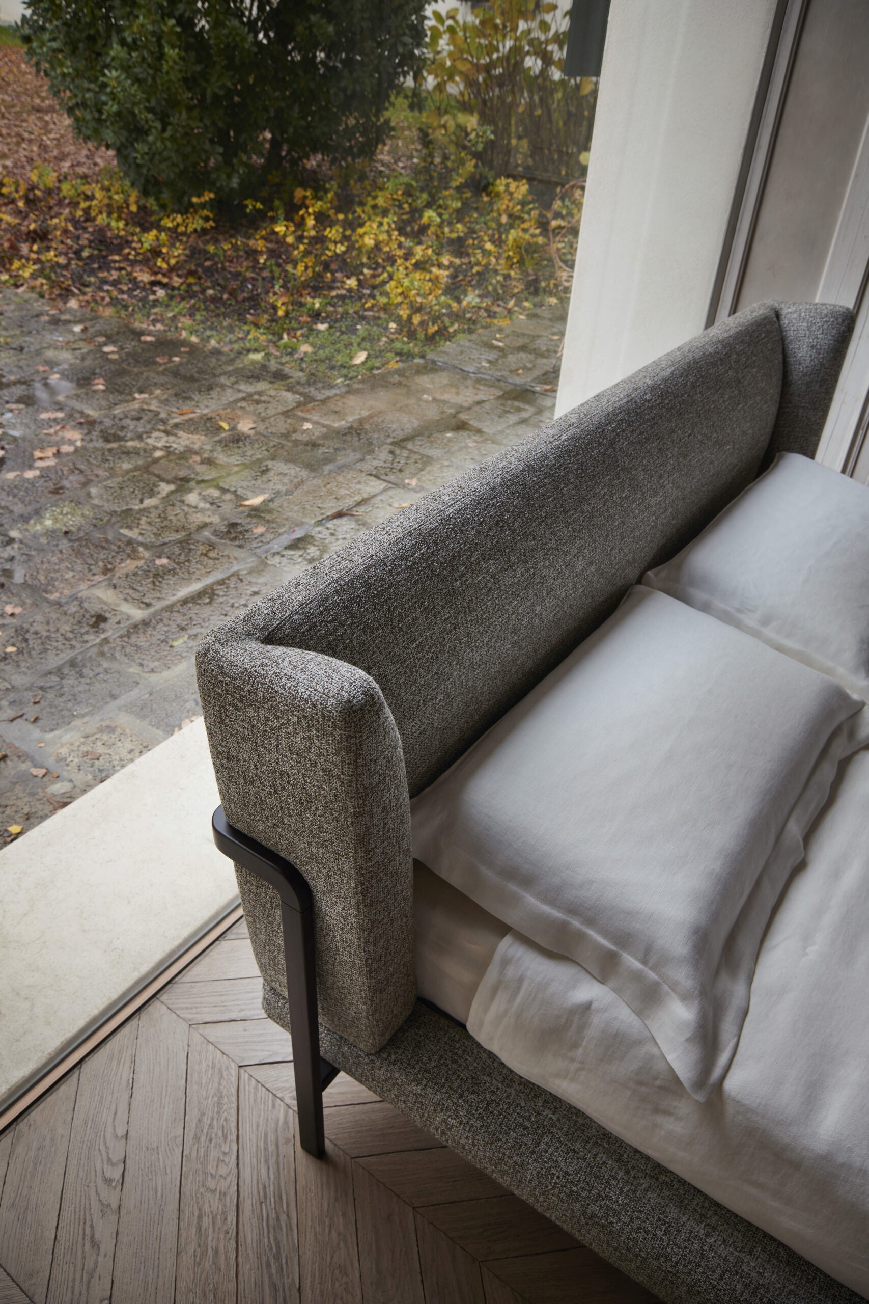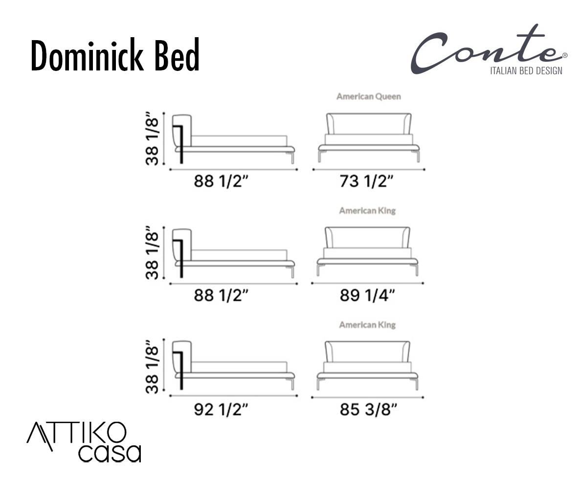 Discover the refined elegance of the Dominick King Bed by Conte Casa, crafted with the exquisite design vision of architect Enrico Cesana. This luxurious bed exudes sophistication with its gracefully curved, embracing a plush upholstered for ultimate comfort. The Dominick bed features a micro-perforated wooden support surface, ensuring optimal breathability for restful sleep. Perfectly suited for opulent interiors, this bed is also available with a high-profile ring and optional storage solutions, blending style and functionality seamlessly into your bedroom sanctuary.