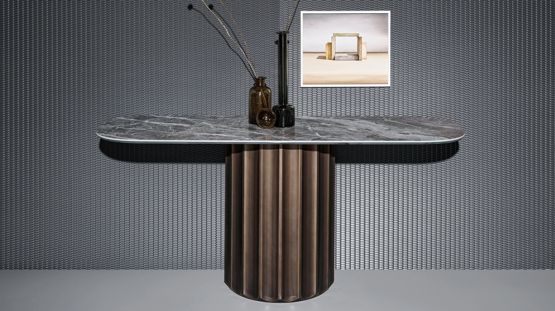 The Dorian Console is a striking design piece that draws inspiration from the iconic Doric column of ancient Greek architecture. Its sculptural base, made of polyurethane with a brushed finish, features the characteristic vertical grooves that echo classical fluting. Replacing the traditional capital, the sleek tabletopāavailable in wood, ceramic, or marbleācreates a refined contrast between historic form and modern minimalism. Perfect for luxury interiors, entryways, or statement walls, the Dorian Console blends timeless elegance with contemporary design.