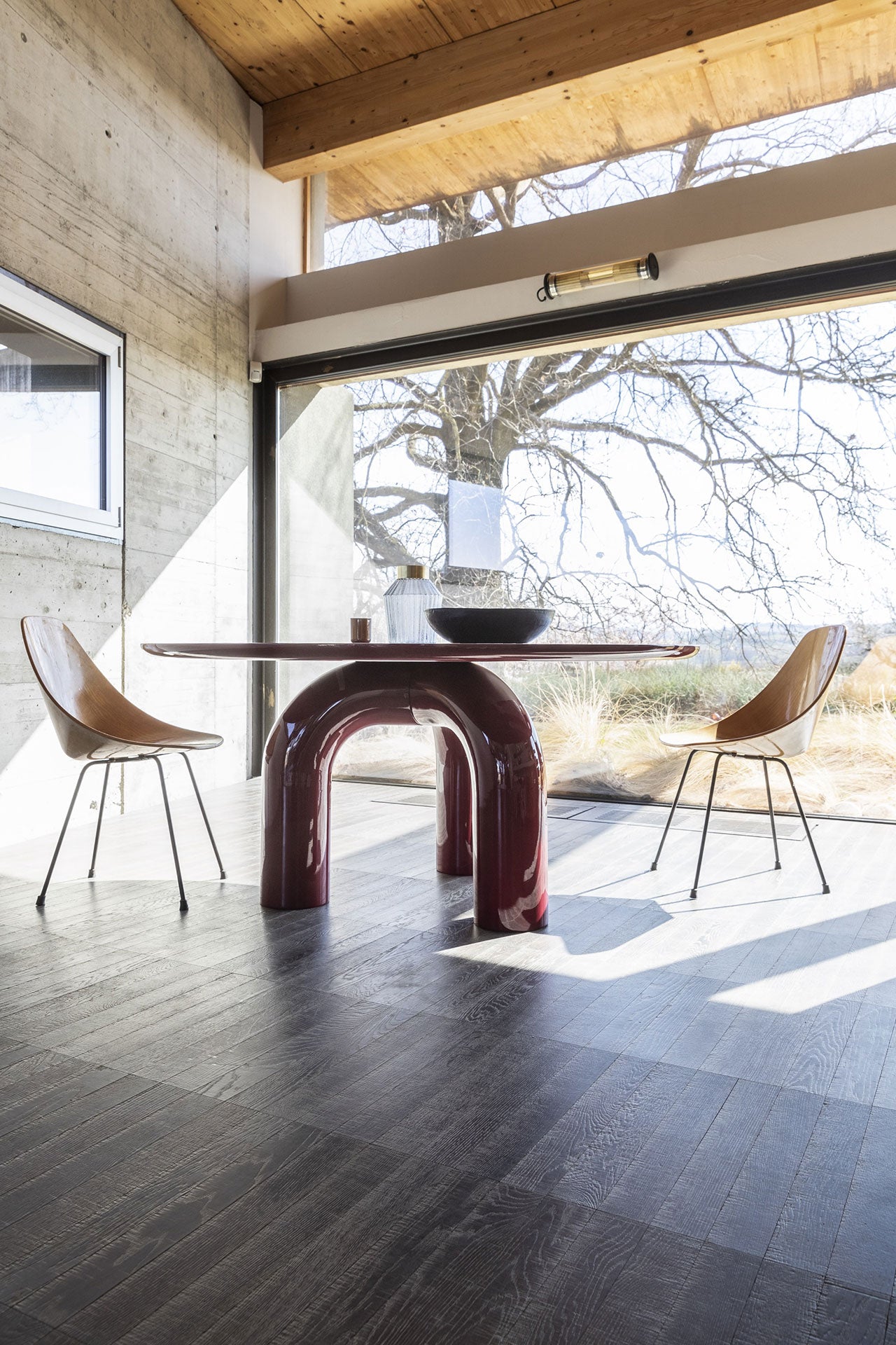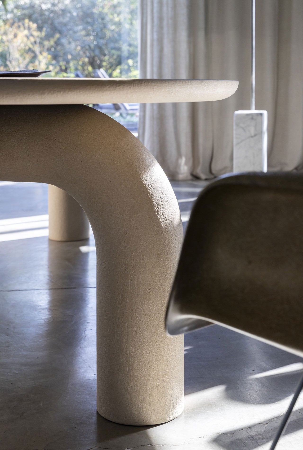 A dining table with a strong identity and timeless appeal. Its substantial thickness emphasizes its presence, while the soft, sculpted legs bring a sense of refined balance. A perfect harmony of strength and elegance that complements both classic and contemporary interiors.