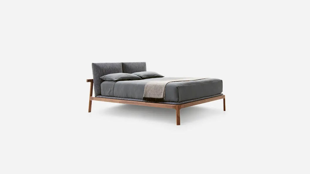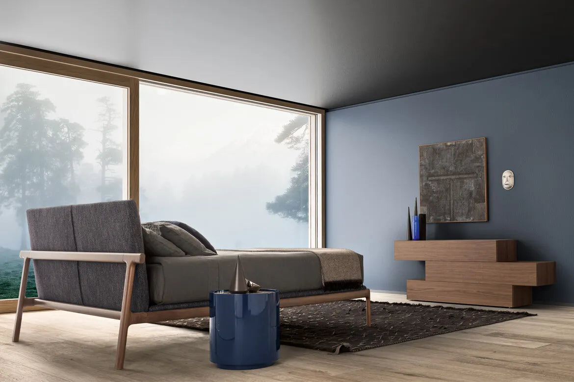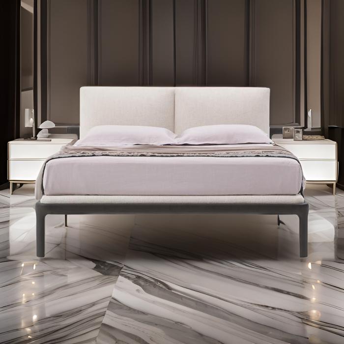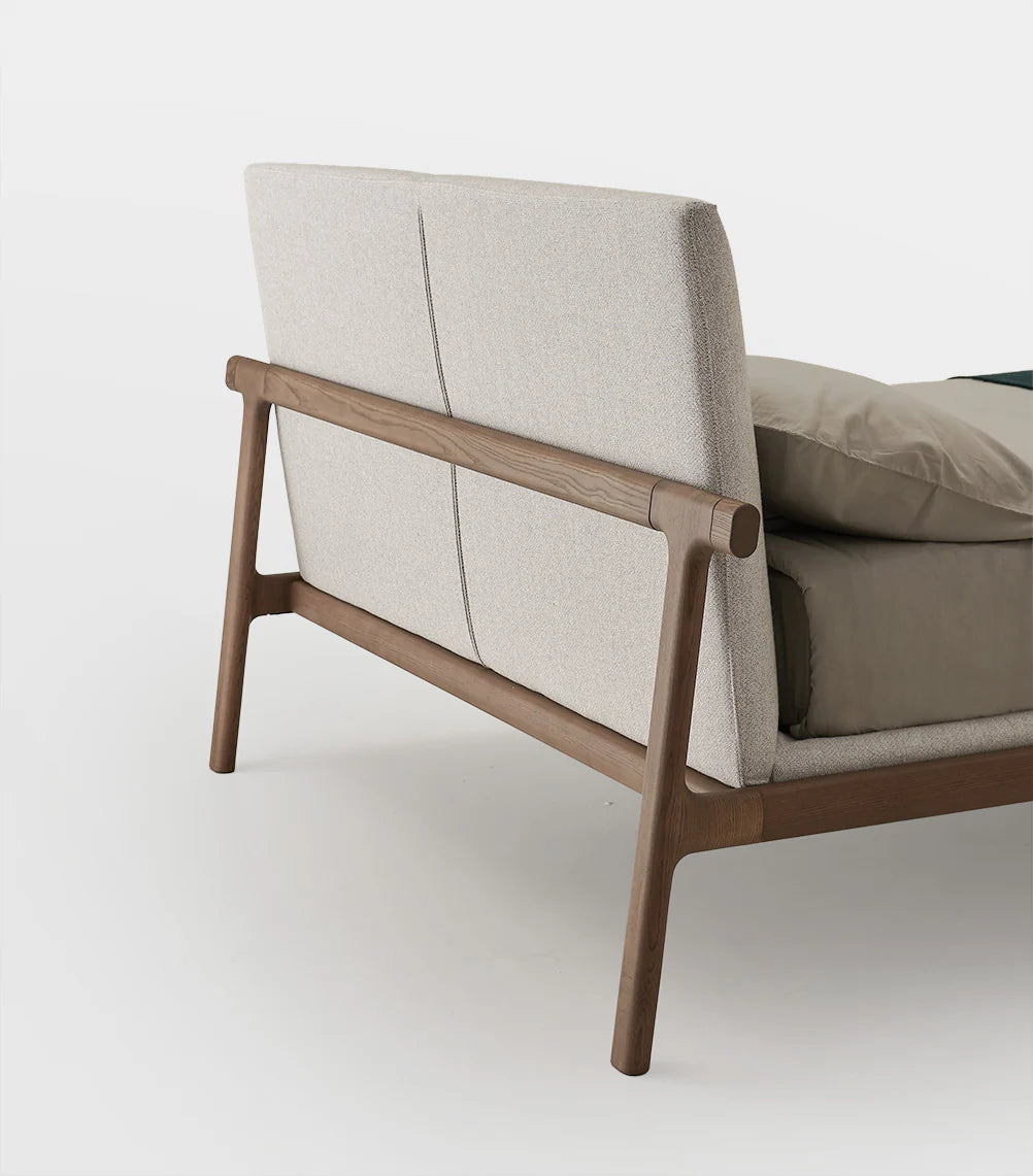 The Fushimi Queen Bed by Pianca draws inspiration from Japanese minimalism, blending harmony, balance, and exquisite craftsmanship. Featuring a solid ash wood frame in a natural Rovere finish, this luxury bed embodies understated elegance. The padded headboard and mattress base, upholstered in Fenice fabric (Color #62), enhance comfort while maintaining a sleek aesthetic. Supported by a structural base of curved beech wood slats, the Fushimi bed is as durable as it is beautiful, making it a perfect addition to refined interiors seeking a serene ambiance.
