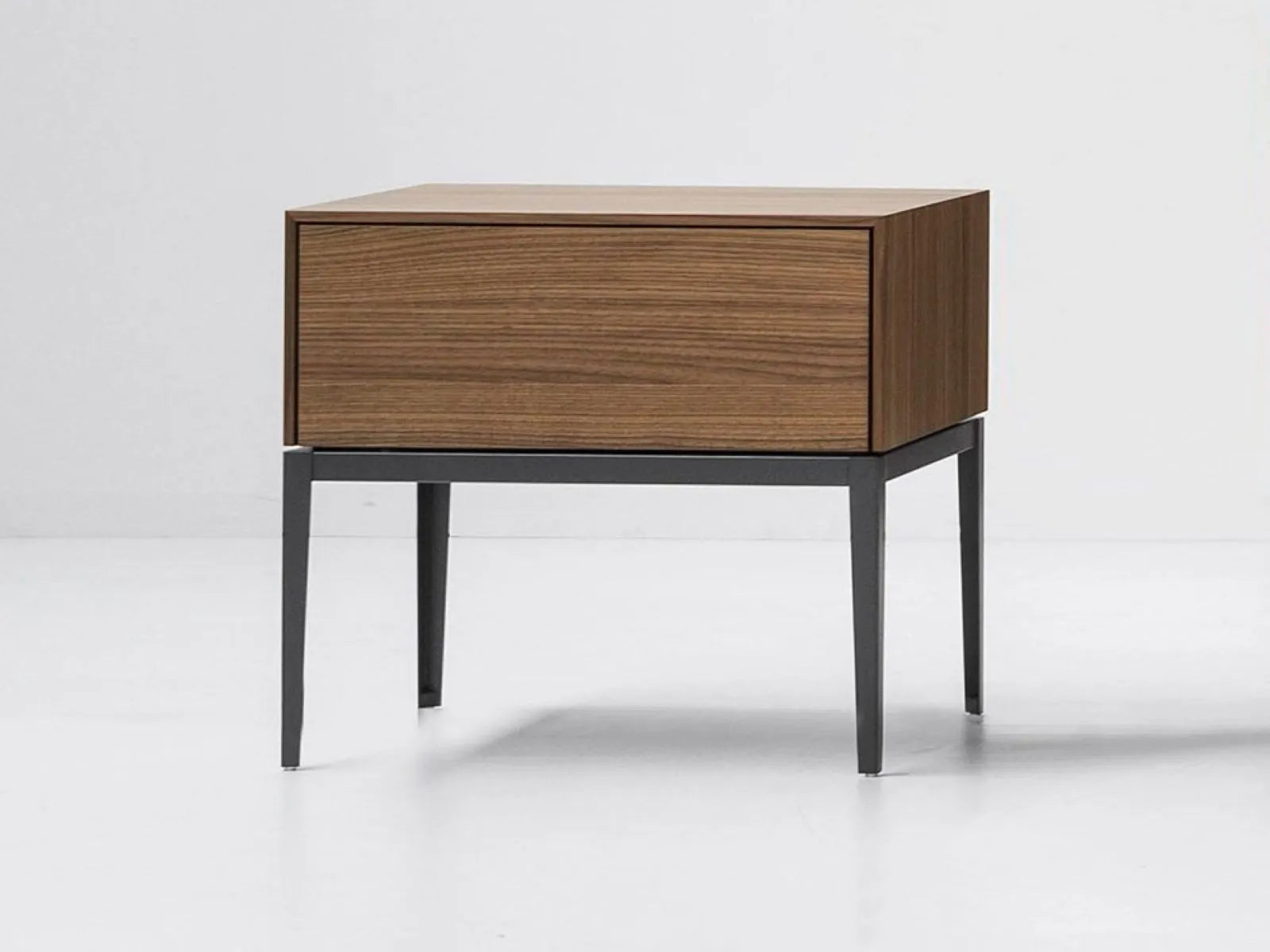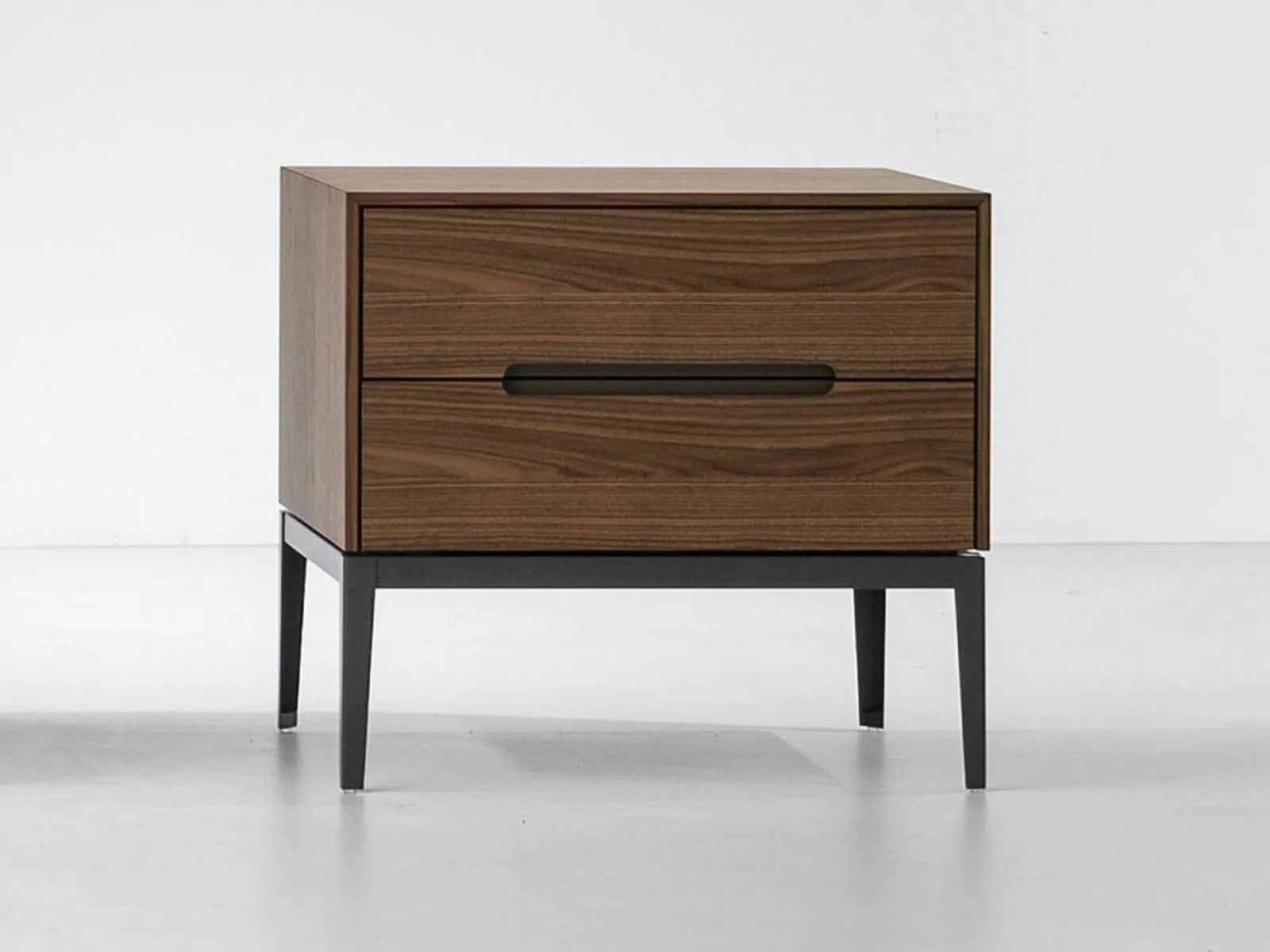 Inspired by the timeless allure of Salvador Dalí’s muse, this bedside table features a refined Canaletto walnut frame, complemented by four sleek metal legs available in anthracite grey or a variety of metallic finishes. The recessed handles, also in anthracite grey, add a subtle yet modern touch.