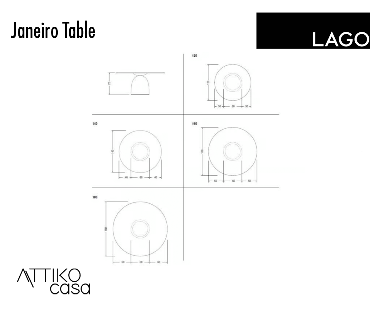 Dimension: Ø 120/140/160/180 x H 73 cm