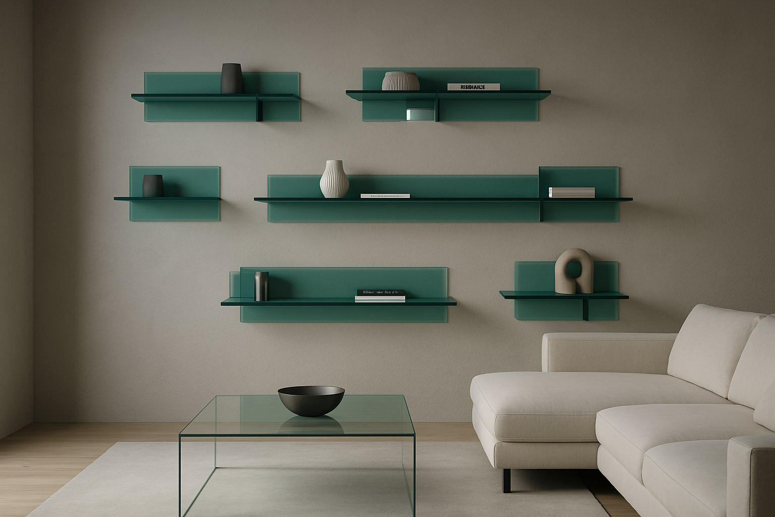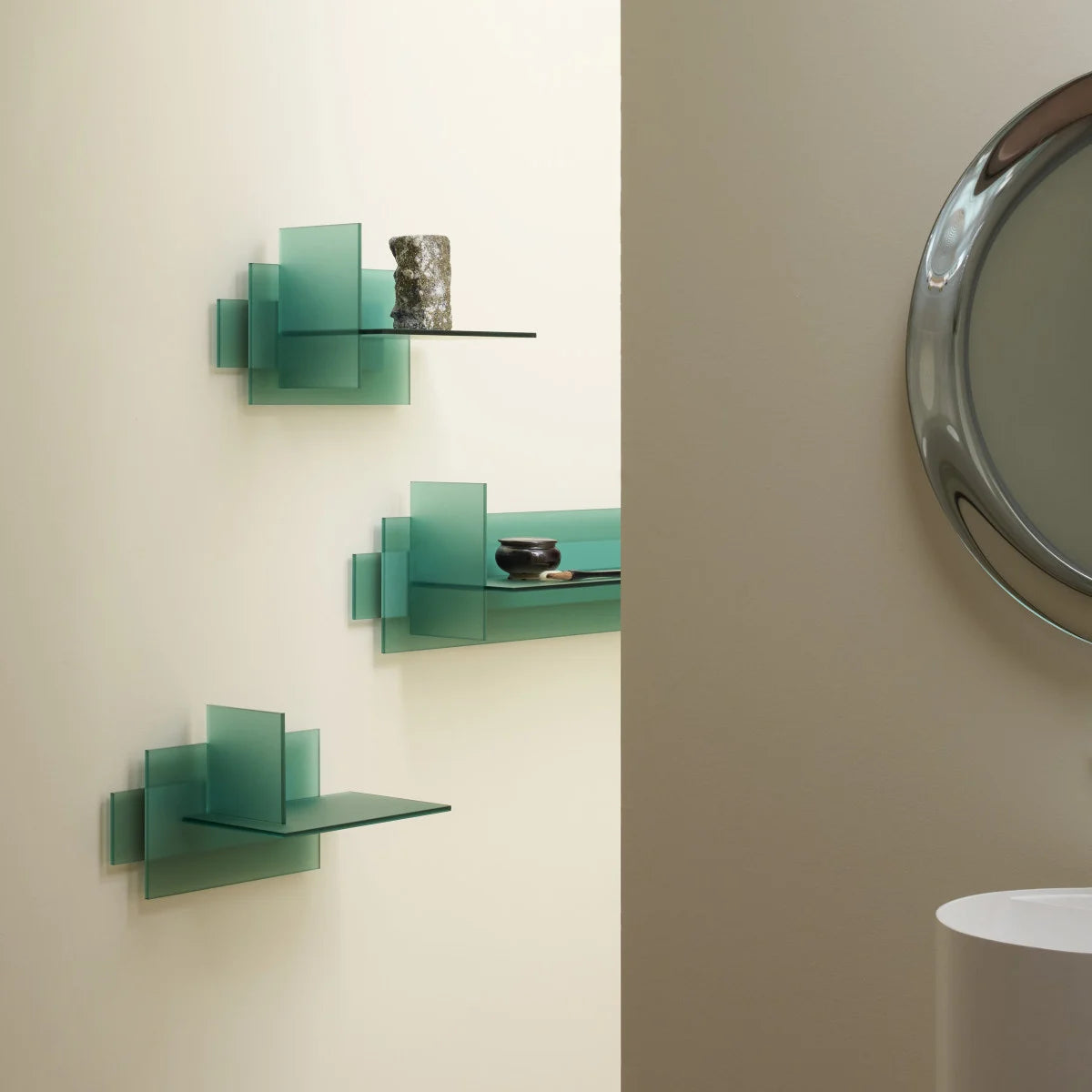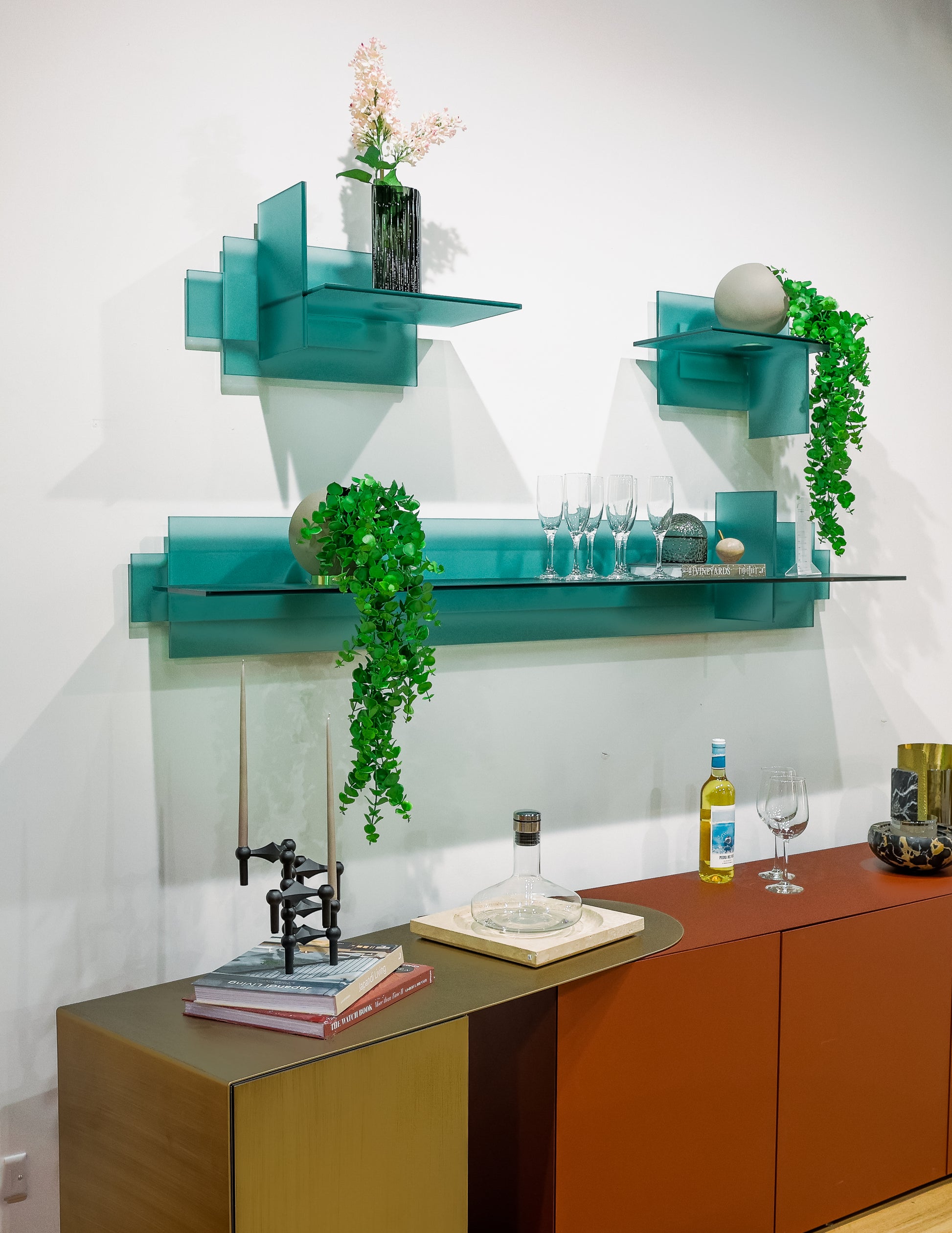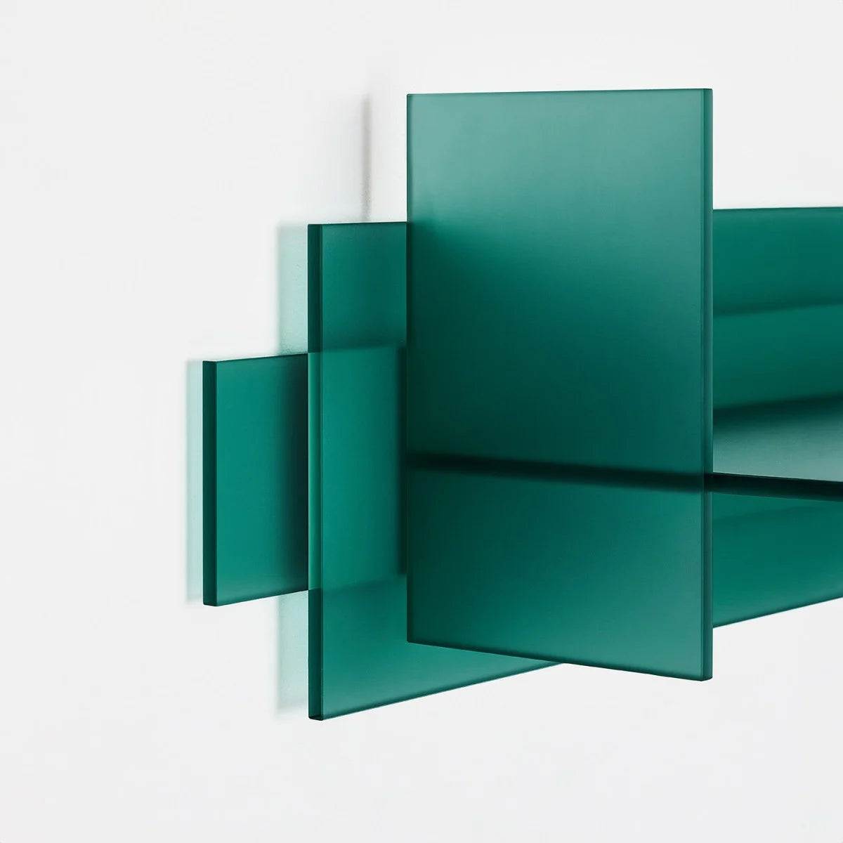 Stunning furniture collection featuring shelves, consoles, and low tables crafted entirely from 10mm tempered green or extra-clear double-sided acid-etched glass. Each piece is a sculptural masterpiece, created through an innovative UV bonding technique, where interlocked and overlapping glass sheets form a pure, refined design. The versatile shelves can be installed upside down, adding flexibility to their elegant and modern aestheticāperfect for contemporary interiors.