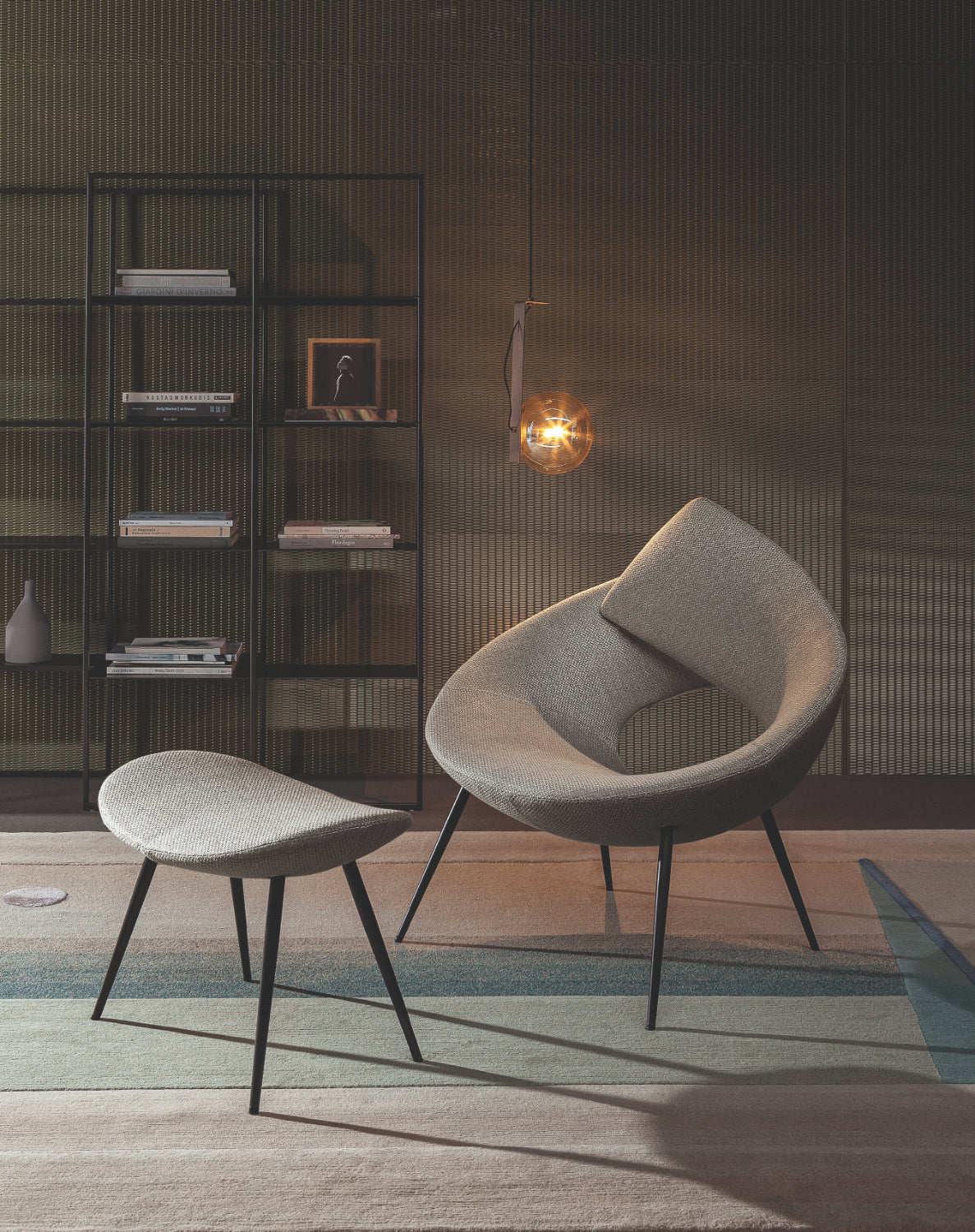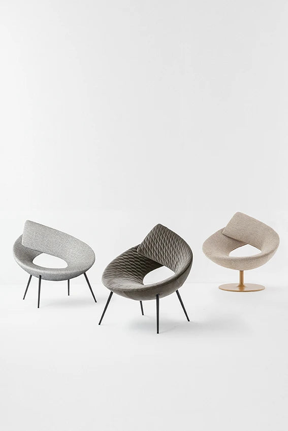 Discover the Lock Armchair by Alessandro Busana, designed to embody the feeling of safety and comfort. Featuring a unique padded strip that folds onto itself to create a supportive backrest, this armchair places the user at the center of its design. Available in fabric, eco-leather, or leather—with fully removable upholstery in one-color or two-color options—Lock offers both style and functionality. Choose between four slender metal legs or a distinctive swivel base, with the quilted Lock Ego version also available. Elevate your space with a statement piece that blends elegance and security.