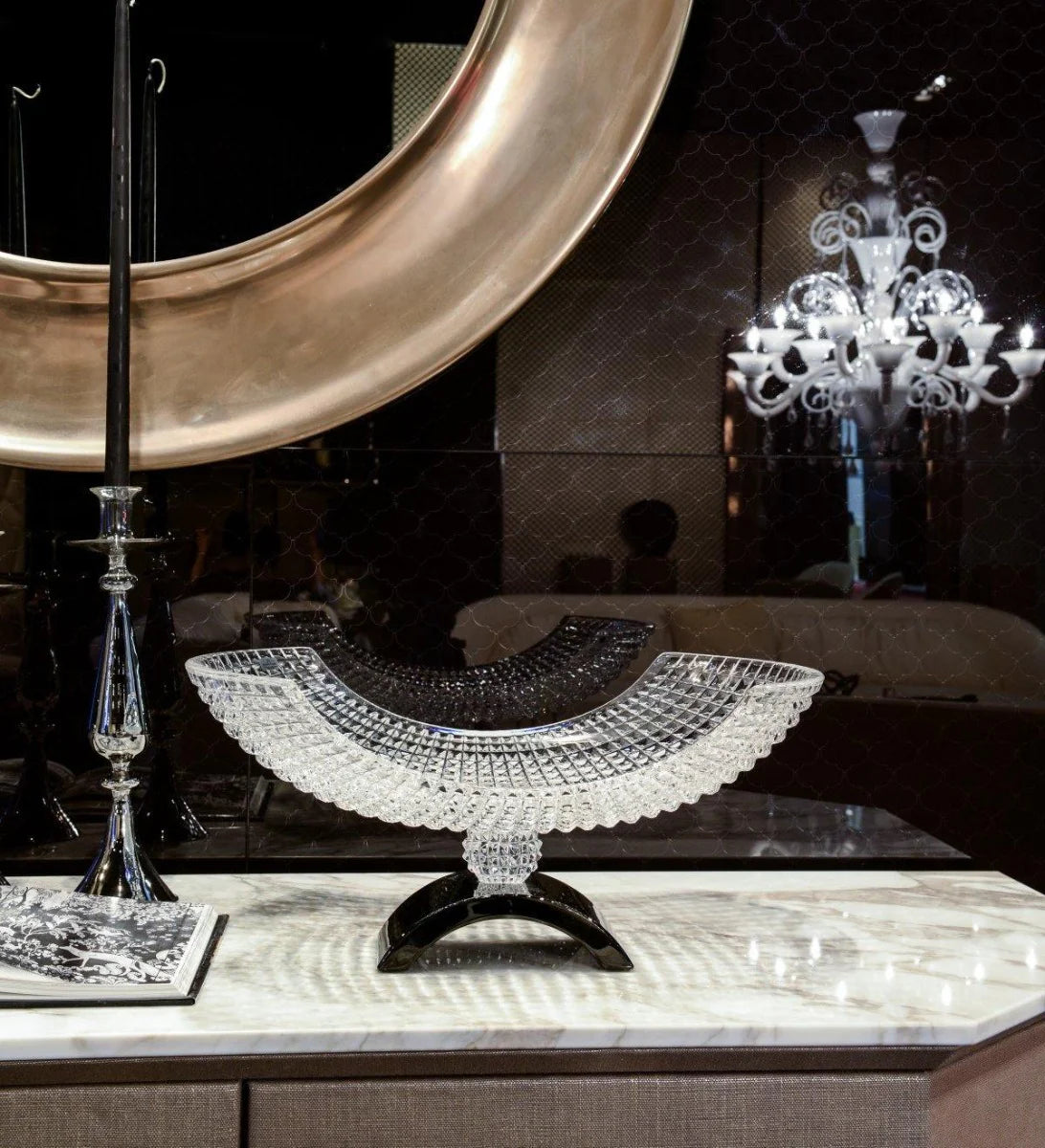 The Luxé XXL Footed Bowl by Mario Cioni is a breathtaking expression of scale, elegance, and crystal artistry. Hand-cut from transparent and black crystal, this oversized bowl features exquisite detailing and a timeless footed silhouette that commands attention. Ideal as a centerpiece or decorative accent, it elevates dining tables, consoles, and display cabinets with luxurious presence. A true statement piece, it embodies grandeur and refined craftsmanship.