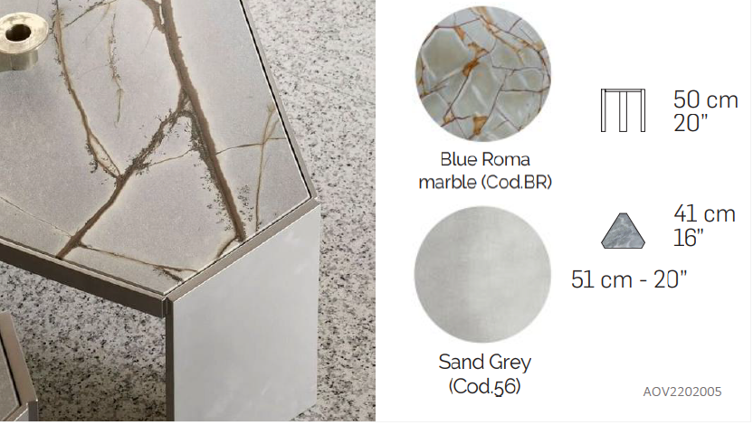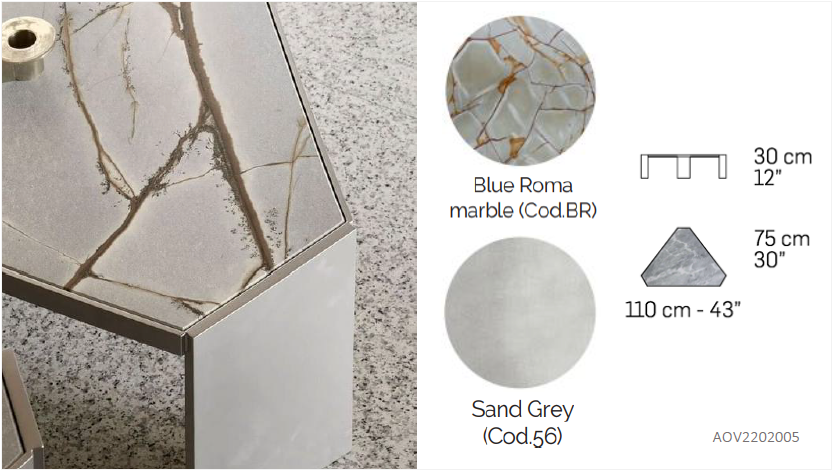 • TOP FINISH & MATERIAL: BLUE ROMA MARBLE
