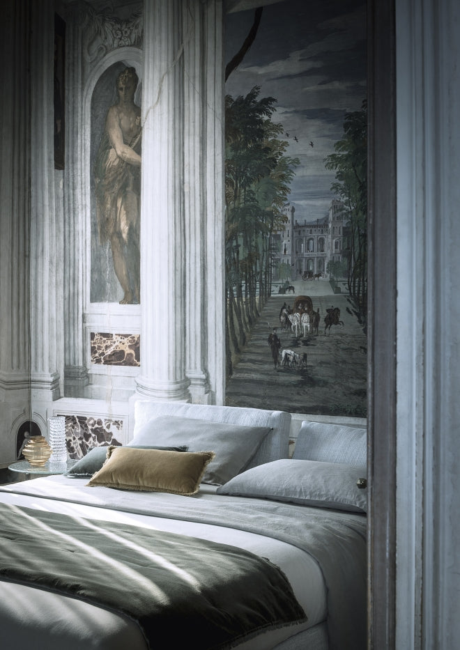 Sharing the same philosophy as the iconic Hab sofa introduced in 2020, the bed combines sculptural beauty with authentic comfort. The structure, crafted in wood and metal, is padded with differentiated-density polyurethane foam to deliver optimal support, then wrapped in cotton fabric for a soft, tailored finish.