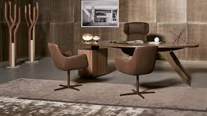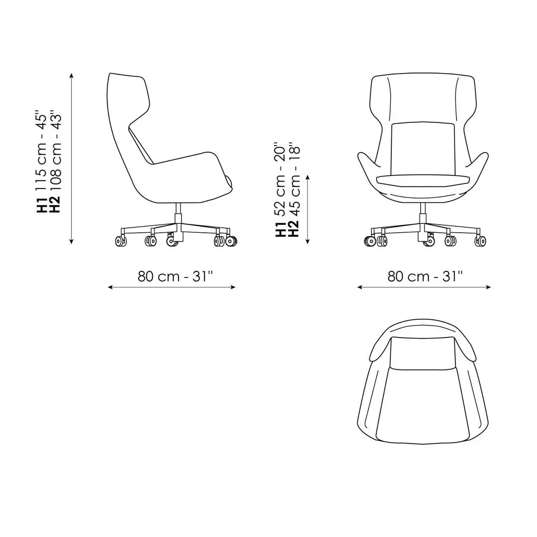 The Newton Office Armchair combines commanding presence with all-encompassing comfort. Its high backrest and wide ergonomic shell offer essential support for long hours, while the bronze swivel base with five wheels ensures smooth mobility and stability. Upholstered in 100% genuine leather, Newton is available as a single-material chair or in a dual-covering version with a fabric seat and leather front cushions for a refined, personalized touch.