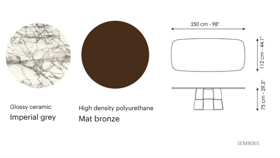 Dimensions: 250 cm W × 112 cm D × 75 cm H / 98.4" W × 44.1" D × 29.5" H