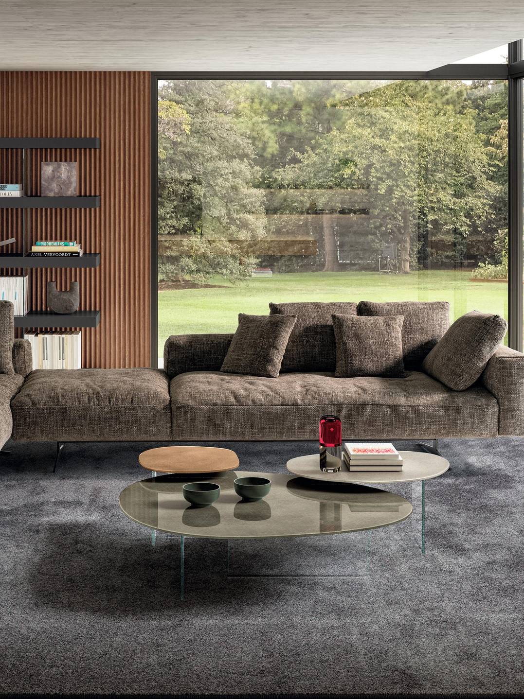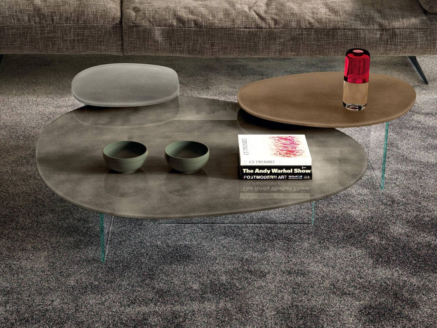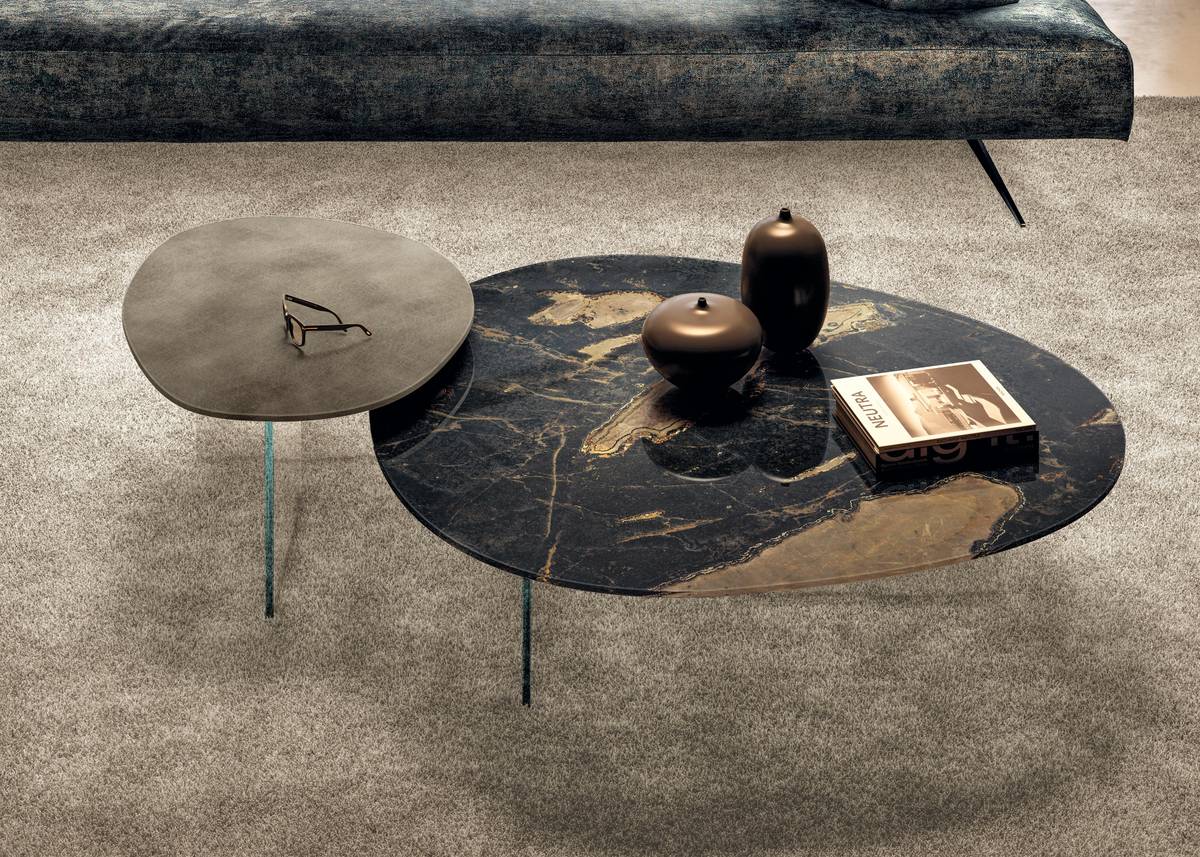 The Pleasure occasional table is a statement of organic elegance, featuring flowing, irregular lines reminiscent of polished stones and natural minerals. Its top rests gracefully on extrachiaro polished glass legs, creating a floating effect that adds lightness to any space. Fully customizable in XGlass finishes—including marble, metal, wood, fabric, or matte and glossy lacquered glass—this table allows for endless combinations, perfect for creating a personalized, sophisticated composition.