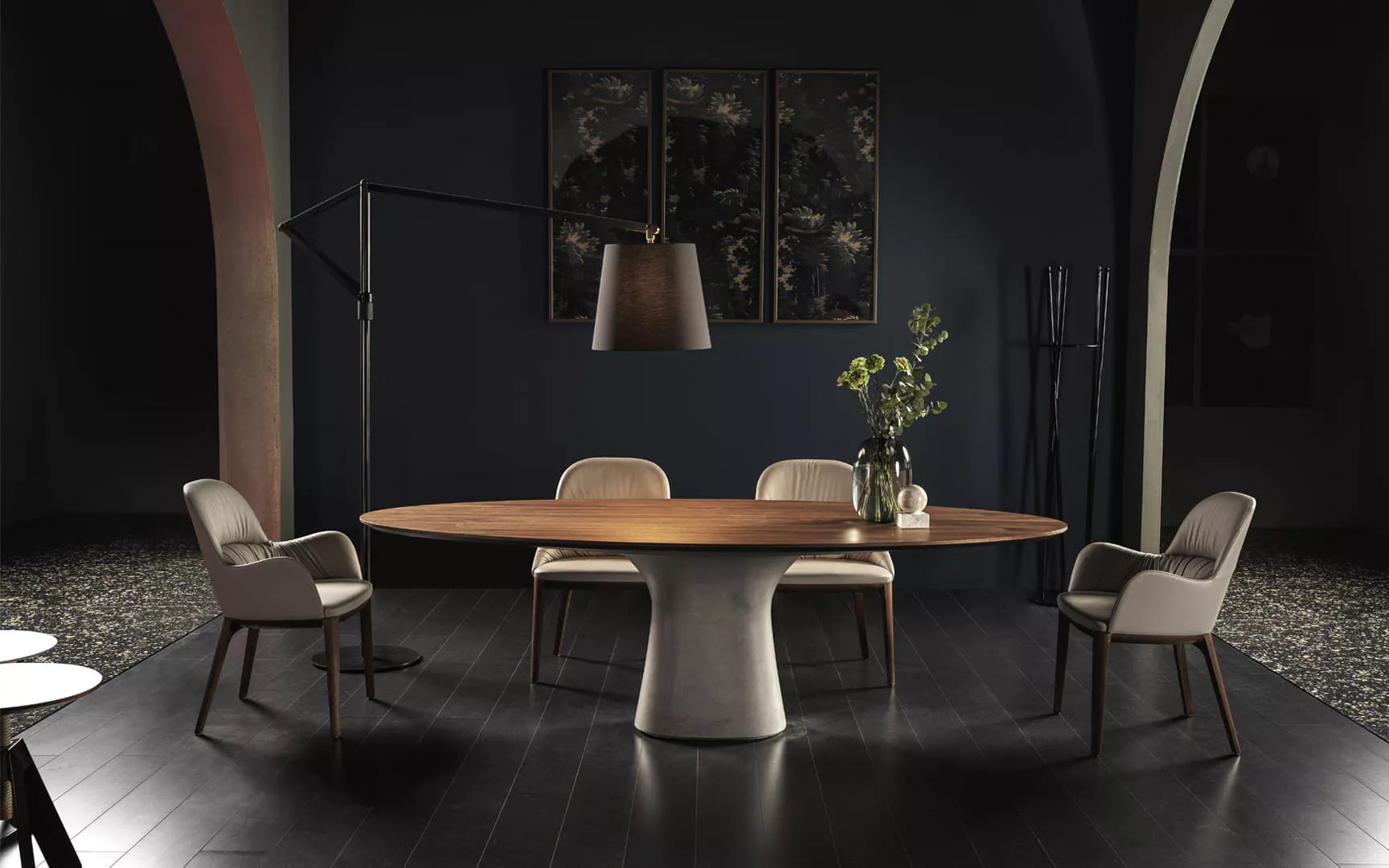 Versatile Elegance: Dining Table with Concrete Base & Luxurious Tops