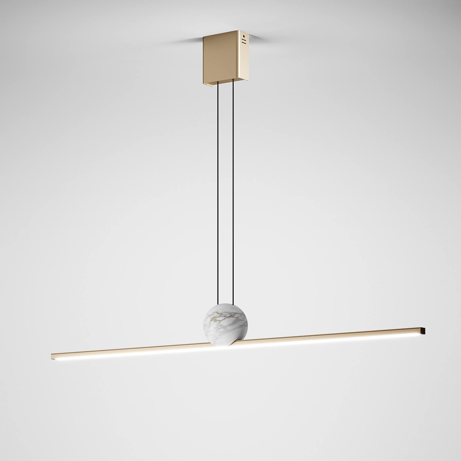 Description: 8146/S Regolo suspension metal profile diffuser matt champagne, decorative sphere in gold calcatta marble