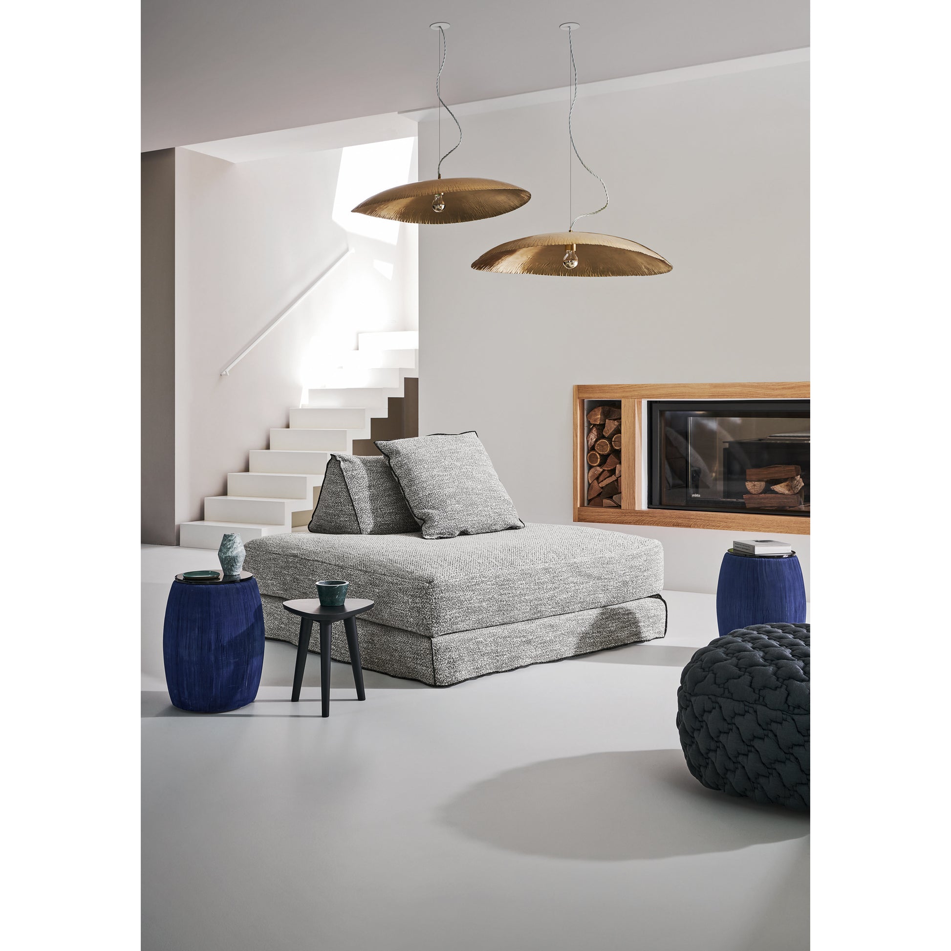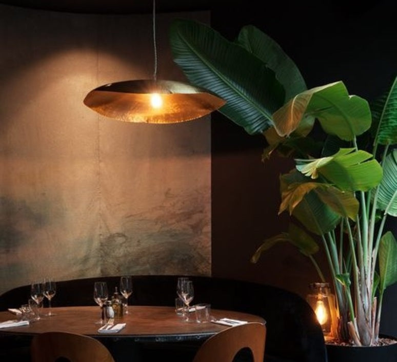 The BRASS Lamp family celebrates the ductility and warm glow of brass, creating a striking decorative impact for interiors. Its delicately curved disc, floating gracefully in space, reflects light poetically—subtly in the smaller version or dramatically in the larger one. Designed to be used individually or grouped, it delivers a cinematic and visually captivating effect. Hand-hammered craftsmanship gives each piece unique character, with natural surface variations and patina over time enhancing its artisanal charm.