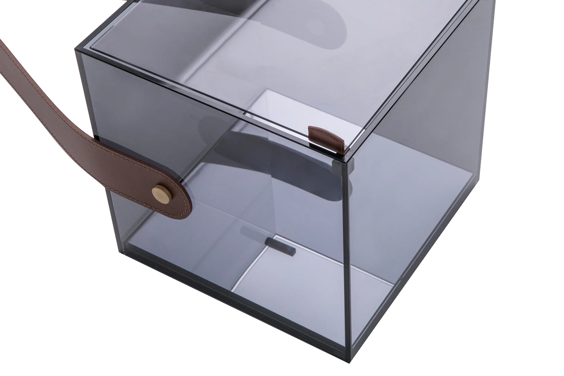 The Cheri Glass Box is a sophisticated showcase designed to elevate any living space with quiet luxury. Crafted in crystal glass with mirrored backs, it reflects light beautifully while highlighting the objects within. Thick leather detailing and a dark brown leather belt add depth and character, while brass accents introduce a subtle metallic warmth. Sculptural yet functional, this elegant display piece transforms everyday objects into curated statements.