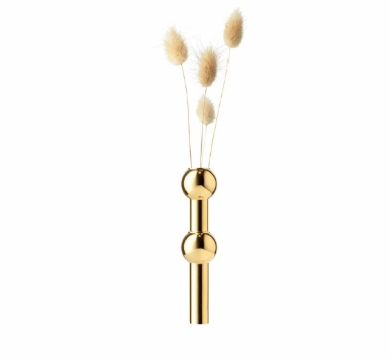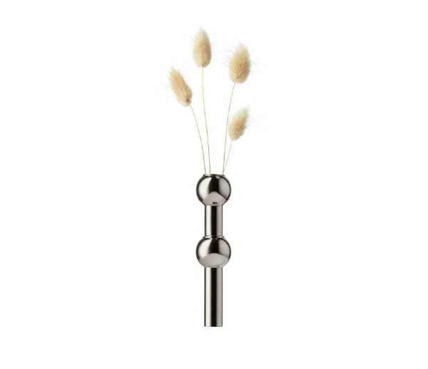 The STOFF Nagel Vase adds a refined floral element to the iconic modular candleholder system. Designed to fit seamlessly into your STOFF arrangement, this elegant metal vase holds small blooms or dried flowers, bringing natural beauty to your sculptural display. Crafted in finishes like chrome, brass, and matte black, it blends effortlessly with other STOFF elementsāperfect for creating dynamic, personalized centerpieces with a soft, organic touch.