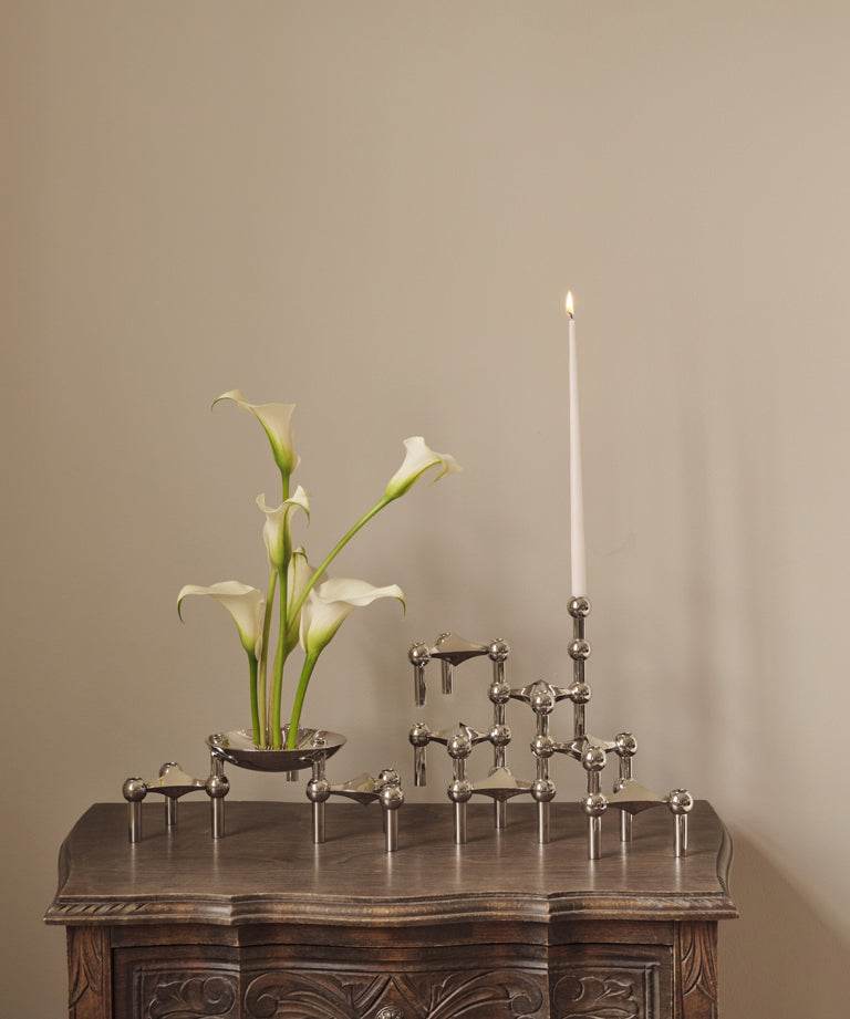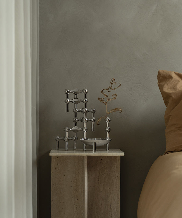 The STOFF Nagel Vase introduces a refined floral accent to the iconic modular candleholder system. Designed to integrate seamlessly with your STOFF arrangement, this elegant metal vase holds small blooms or dried flowers, infusing your sculptural display with natural beauty and organic charm. Available in finishes like Matte Black, Dark Chrome, and Gold, it harmonizes effortlessly with other STOFF elements, allowing you to create dynamic, personalized centerpieces that balance artistry and elegance.