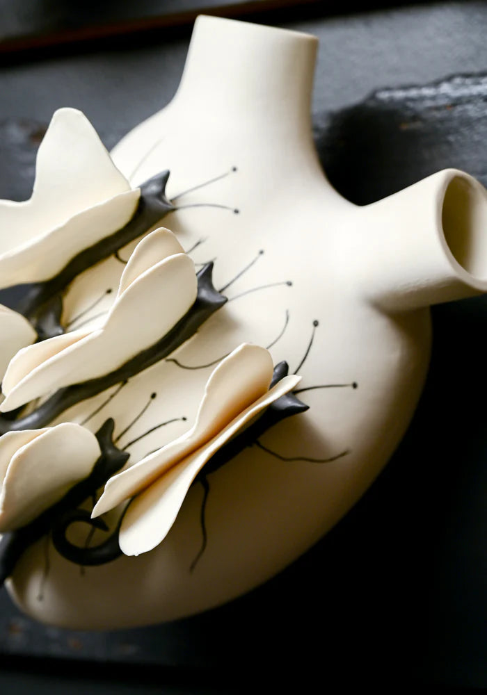 Inspired by the beloved Italian song Volare, this wall vase transforms the feeling of love into sculptural form. Ceramic butterflies rest delicately on the heart, symbolizing the sensation of flying when in love—capturing the sentiment, “No wonder my happy heart sings / your love has given me wings.”