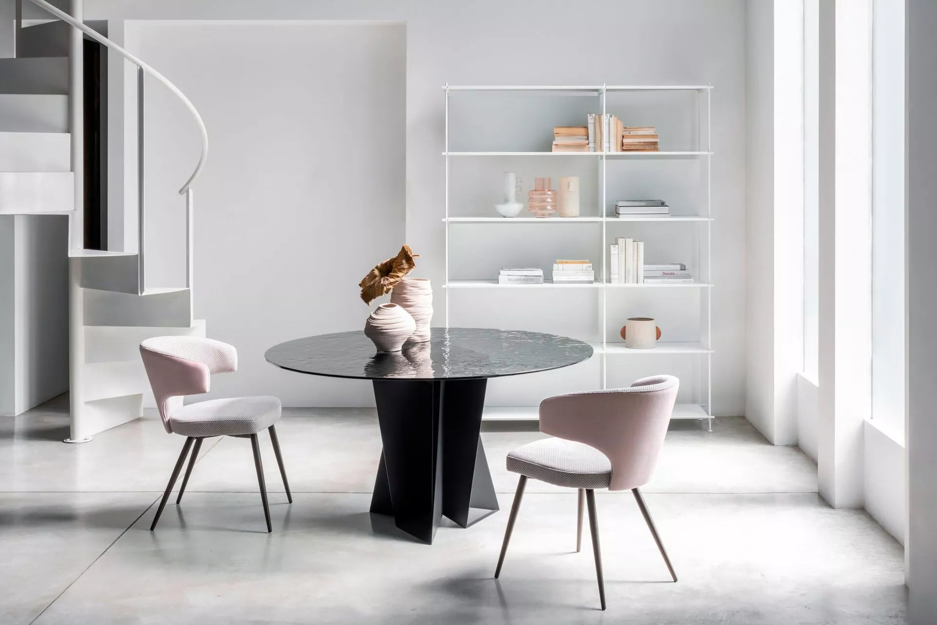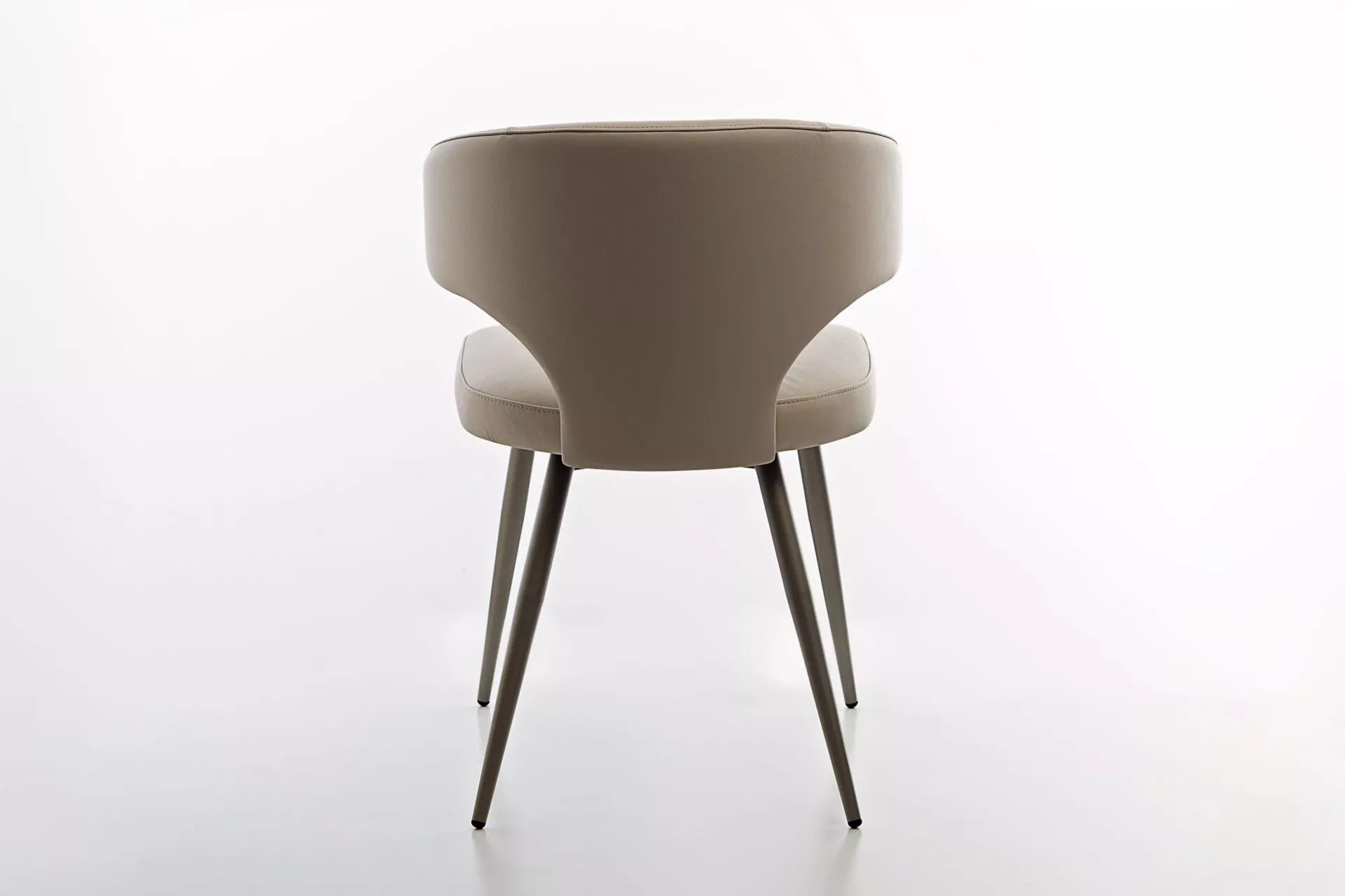 This refined armchair features a CNC-machined plywood seat and back, padded with high-density foam to provide lasting comfort and support. Upholstered in fabric, leatherette, or genuine bovine leather, it offers a wide range of customization options to suit both contemporary and classic interiors.