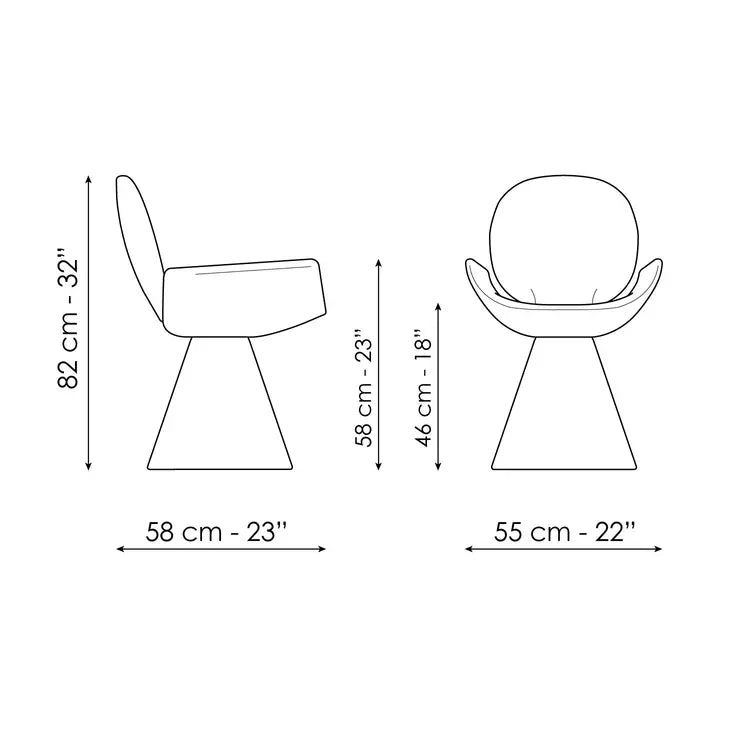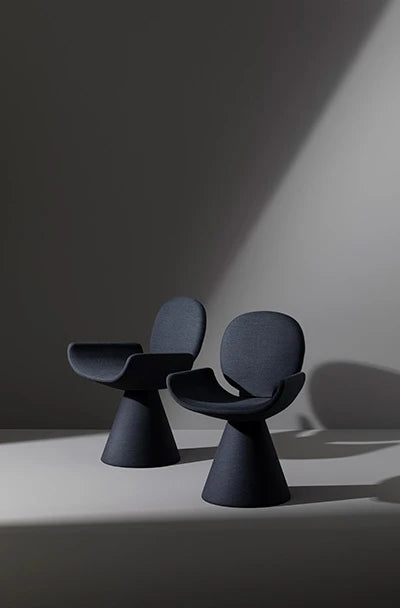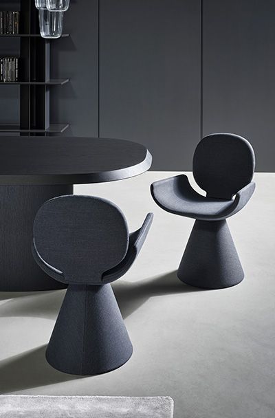 The Youpi Chair by Fabrice Berrux is a uniquely designed seating experience that blends comfort with contemporary elegance. Its distinctive silhouette, reminiscent of a stylized human figure, embraces you with sophistication. Fully upholstered in fabric or leather, the Youpi chair features a seamless design where a circular backrest transitions effortlessly into a spacious seat, all supported by a flared conical base. Also available with four metal legs, this modern statement piece adds style and lightness to any space. Perfect for those who appreciate innovative, high-end design.